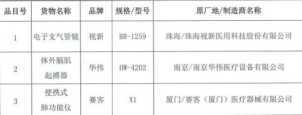 1 电子支气管镜、体外膈肌起搏器等设备一批 0.3 中标(成交)供应商